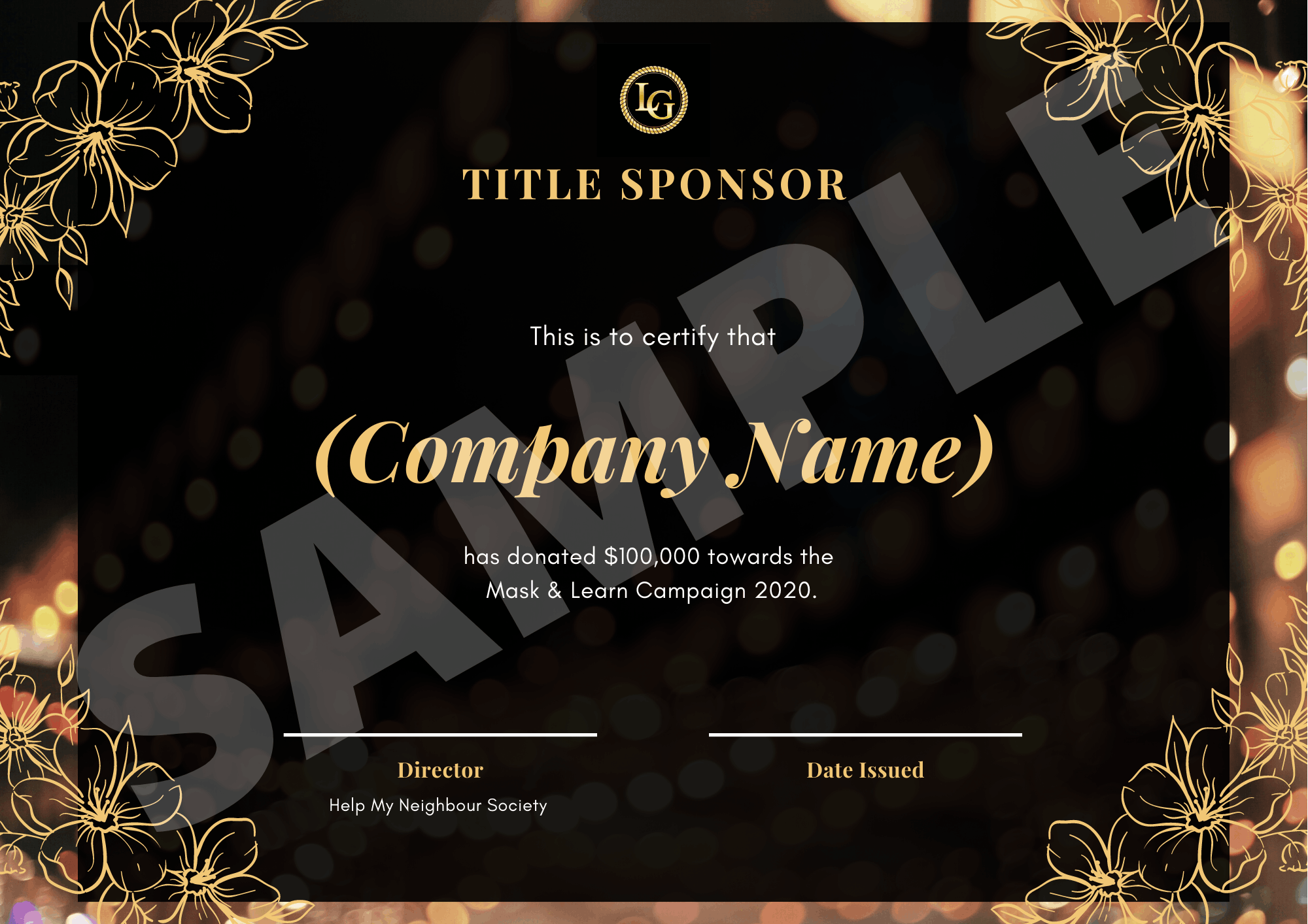 14. Printable Title Sponsor Certificate.