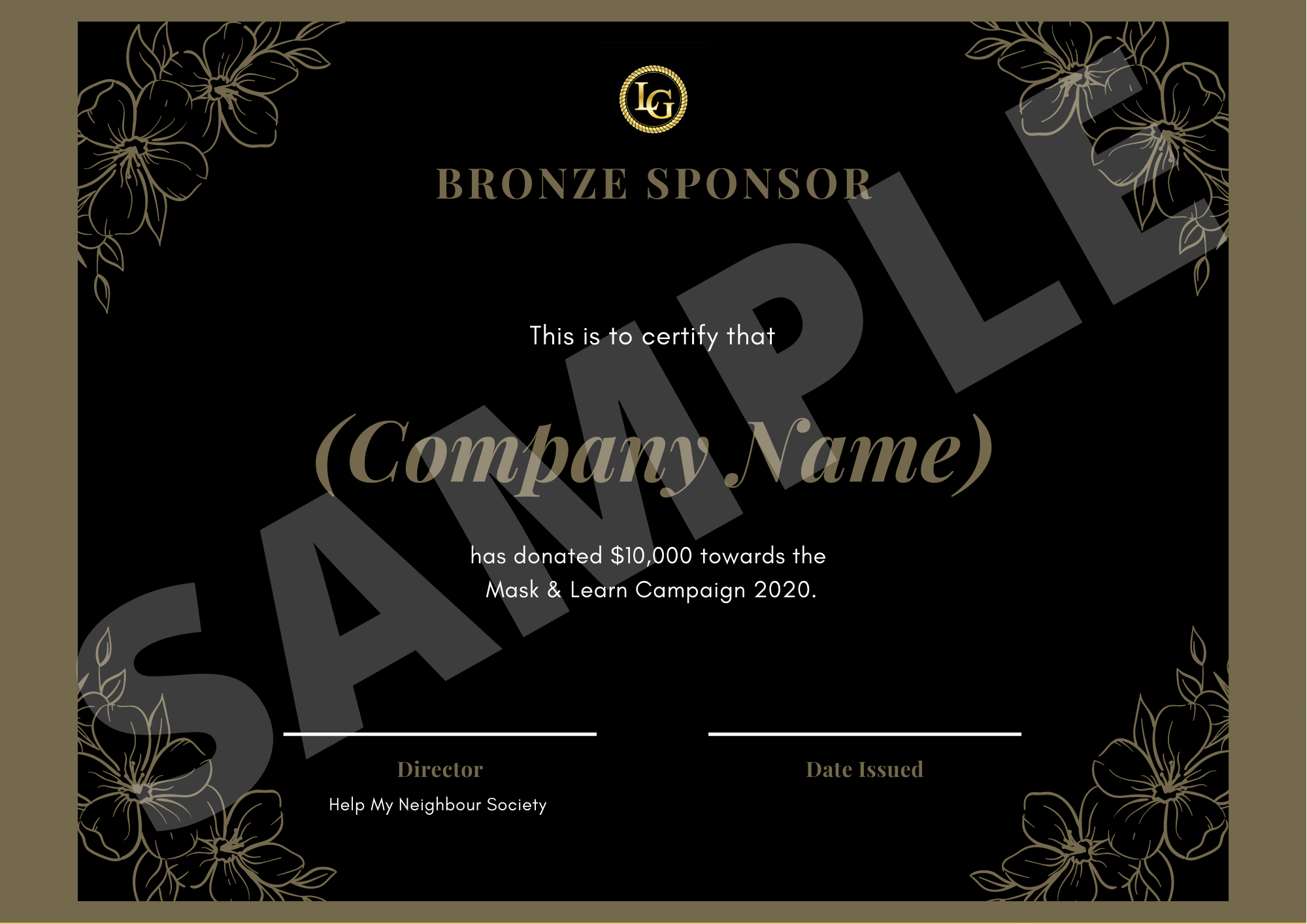 12. Listed as Title Sponsor on back cover of pamphlet included with each donated mask.